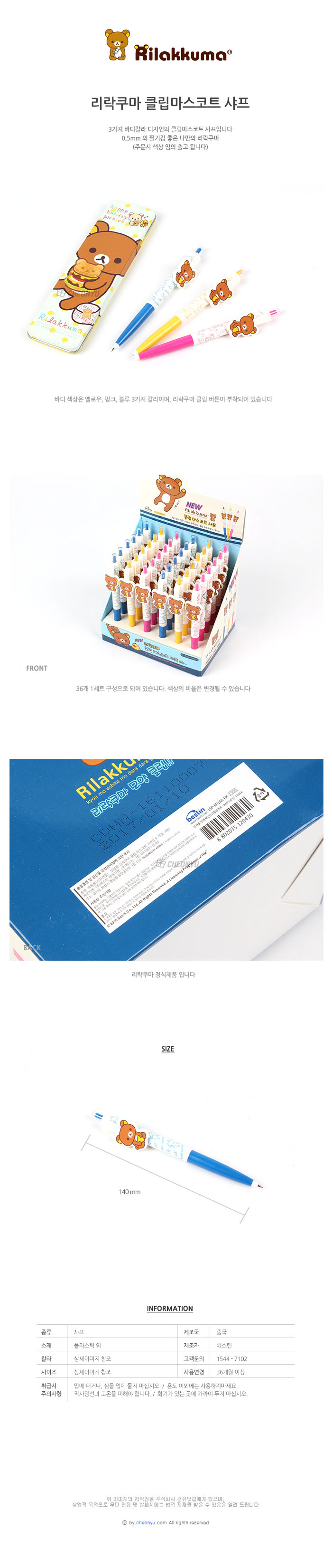 상품명 : [리락쿠마] 리락쿠마 클립마스코트 샤프-랜덤발송