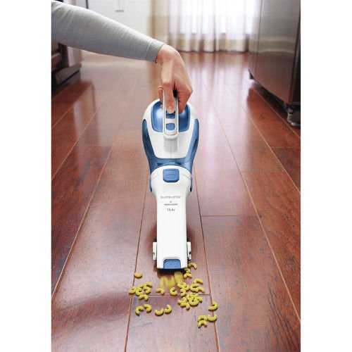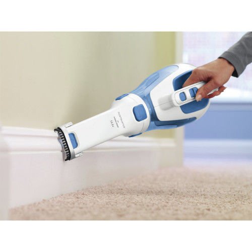 The Black & Decker CHV1410 14.4-Volt Cordless Hand Vac has 50% more reach than the previous Dustbuster design for less bending and better accessibility. Lightweight and portable for quick clean-ups! The rotating, slim nozzle targets dirt in tight spaces. Brush and crevice tool accessories are located on-board so there are no loose items to misplace. The wide mouth design means this vac can effortlessly scoop up large debris. Cyclonic action spins dust and debris away from the filter so suction power stays strong. A Translucent, bagless dirt bowl makes it easy to see dirt and easy to empty. Removable, washable dirt bowl and filters allow for a thorough, hygienic cleaning. It uses a 3 stage filtration system that means less clogging and cleaner air exhaust. I can be stored in 3 versatile ways: horizontally, vertically, or mount on a wall. It has a charging indicator light that allows you to always know you have a good connection. The Energy Star approved charging system saves energy and helps protect batteries.Feature