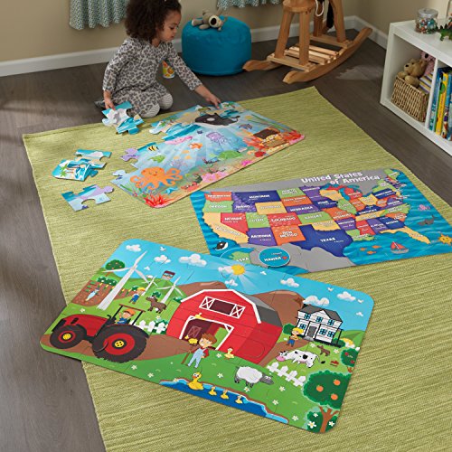 -. Feature : Set of 24 pieces / Pieces are large and thick, perfect for young hands / Packaging doubles as storage / Assembled dimensions: 36 in x 24 in  / 91.5 cm x 61 cm