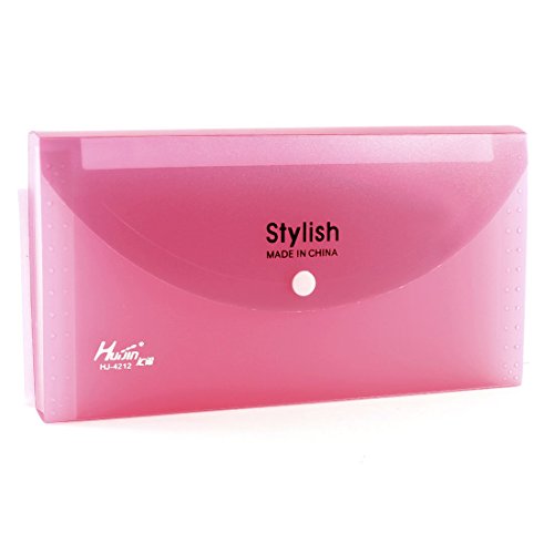 Plastic 13 Pockets Press Stud Receipt Coupon File Box, Clear Red