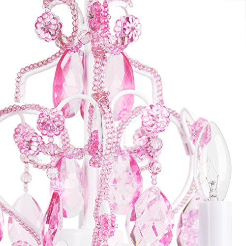 The Three Bu pound Chandelier is a beautiful mini chandelier for your little girl's room. Chandelier has glass and acrylic beads and dangles. It uses three 25 watt candelabra bu pound which are included. Hang either with cord and plug as swag, or professionally install with included chain and ceiling cover plate. UL listed.Feature