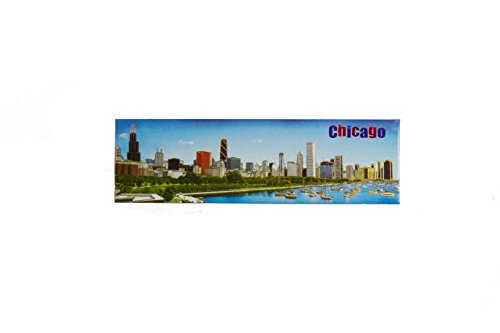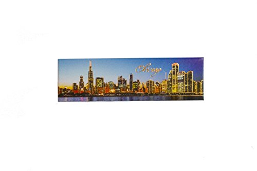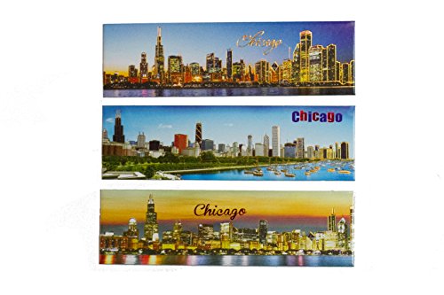 Chicago Skyline Souvenir Refrigerator Magnets w/Gold Trim(2 1/2 x 7 in. Set of 3)