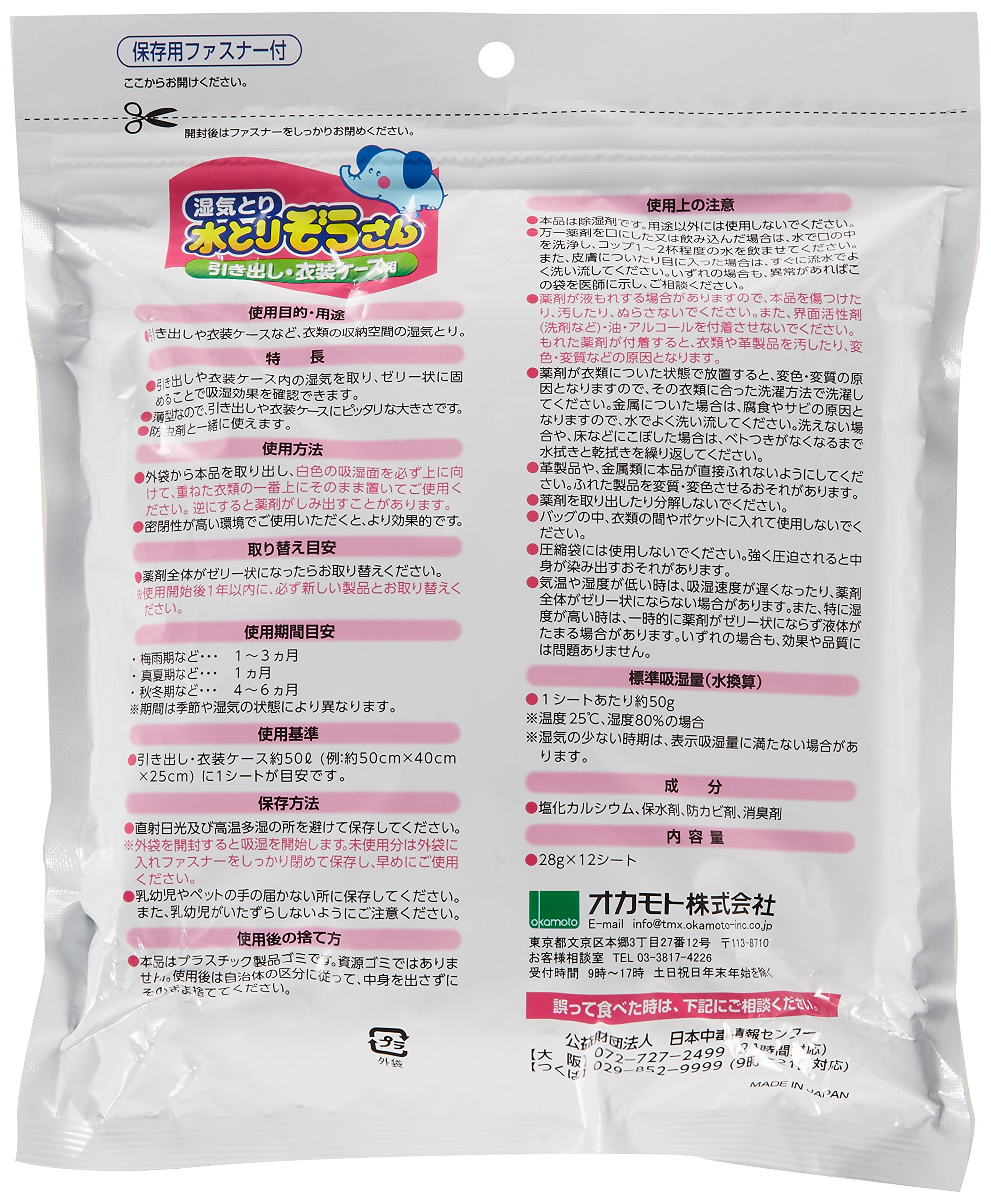 Moisture absorption amount: about 50 g