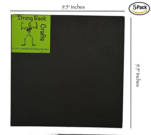Black 6mm thick (5 Pack)--Self-stick Adhesive 9.5" x 9.5" EVA High Density Foam Sheets by Strong Back Crafts- cosplay materials, costumes, cushioning, seats, dog traction, scrapbooking