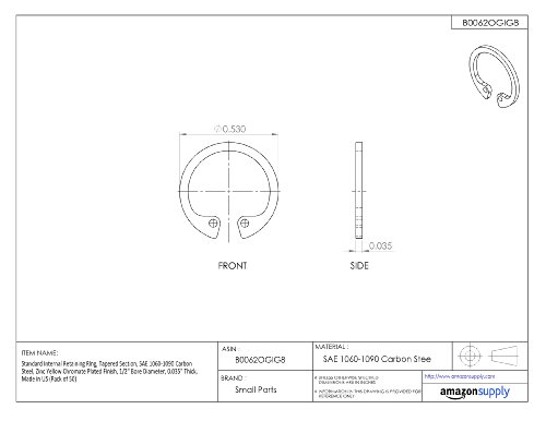 Standard Internal Retaining Ring, Tapered Section, SAE 1060-1090 Carbon Steel, Zinc Yellow Chromate Plated Finish, 1/2" Bore Diameter, 0.035" Thick, Made in US (Pack of 50)
