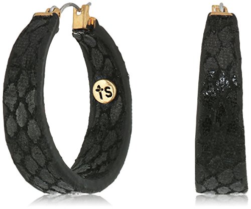 • Covered hoop earrings with faux black snake skin detail.
