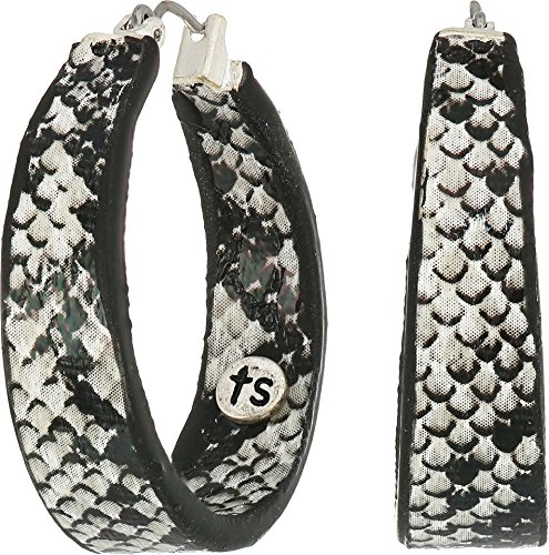 • Covered hoop earrings with faux black and white snake skin detail.