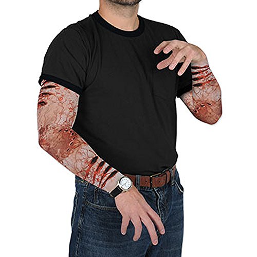 -. Feature : Zombie Bite Party Sleeves / Lightweight Nylon Polyester Material / Each Glove Measures 17" Long / Realistic Graphic Printed Wounds / Fits Most Adult Arms