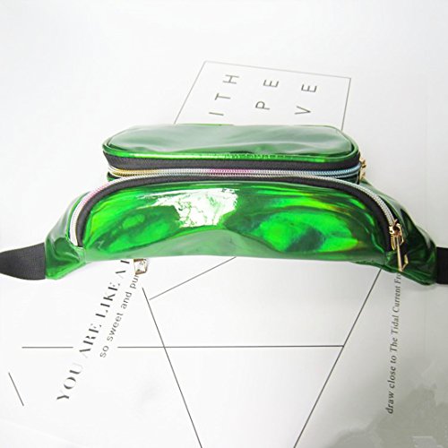 -. Feature : Material:hologram laser PU leather / Size:30*18*7 cm/11.8*7.1*2.8 in / 1 external front zipper bag, 1 external back zipper bag, 1 main zipper compartment divided by 1 no zipper pocket / Black adjustable synthetic fabric straps, zinc alloy zipper, laser hologram material, could reflect lights, change colors, shining and bling bling in the sunshine / Great to be used as a concert fanny pack, festival fanny pack, rave fanny pack, amusement park, barbecue fanny pack, baseball game fanny pack, camping fanny pack and carnival fanny pack