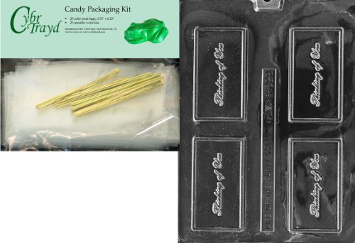 Cybrtrayd "Thinking of You" Business Card Chocolate Candy Mold with Packaging Bundle of 25 Cello Bags, 25 Gold Twist Ties and Chocolate Molding Instructions