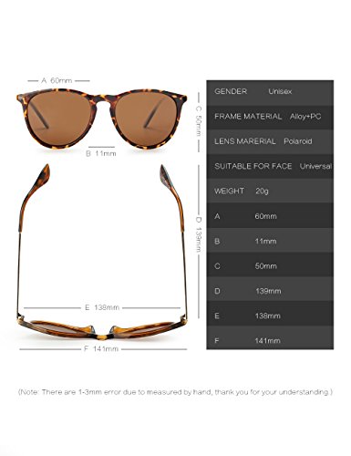 WELUK?Erika?Women?Wayfarer?Sunglasses have?UV 400 protection?with 100%?polarized lenses, giving you full protections when?driving or outdoor?activities. The reason why you should choose WELUK as below: 1.The TAC polarized lens provide 100% UV400 protection, blocks 100% harmful UVA UVB Rays. Restore true color, eliminate reflected light and scattered light and protect eyes perfectly.?Polarized lens with a special polarized filter to block over 99.96% of glare, reduce reflections and glare, you will no tired eyes after a full day in the sun. 2.Premium quality lightweight metal frame provides the ultimate in performance and comfort, impact, scratch resistant and durable. It provides the best lens and frame combination solution with such favorable price. Indeed fine and inexpensive choice. 3.The most popular classic Shade Erika sunglasses in the world, suitable for most face shape and for any age. Idea for beach, vocation, traveling, walking, driving, sports. Size Information Lens Width: 60mm / Lens Height: 50mm / Bridge Width: 11mm / Temple Length: 139mm / Frame Width: 141mm Packaging Included 1 * Sunglasses / 1 * Cleaning soft cloth / 1 * Cleaning soft fabric sunglasses bag / 1* Polarized test card / 1 * Hard?protection?case How To Care To avoid damage, never clean your sunglasses with paper towels or clothing, and also avoid using household detergents or soaps. While a few mild soaps don't harm lenses, today's extra strength soaps are powerful enough to slowly disintegrate lens coatings. After-sale Service If you have any questions, please contact us first, we'll try our best to solve your problems ON TIME. While we provide 90 days money back guarantee lifetime warranty, you have no any risk to try! 0 |