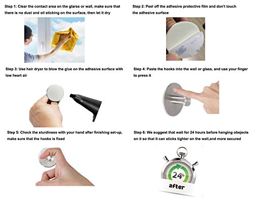 Coat Hooks: No permanent drilling or nails needed. Simply peel and stick the adhesives for wall on your chosen surface (clean and dry),does not damage the wall or glass,they are wonderful bath accessories hook.