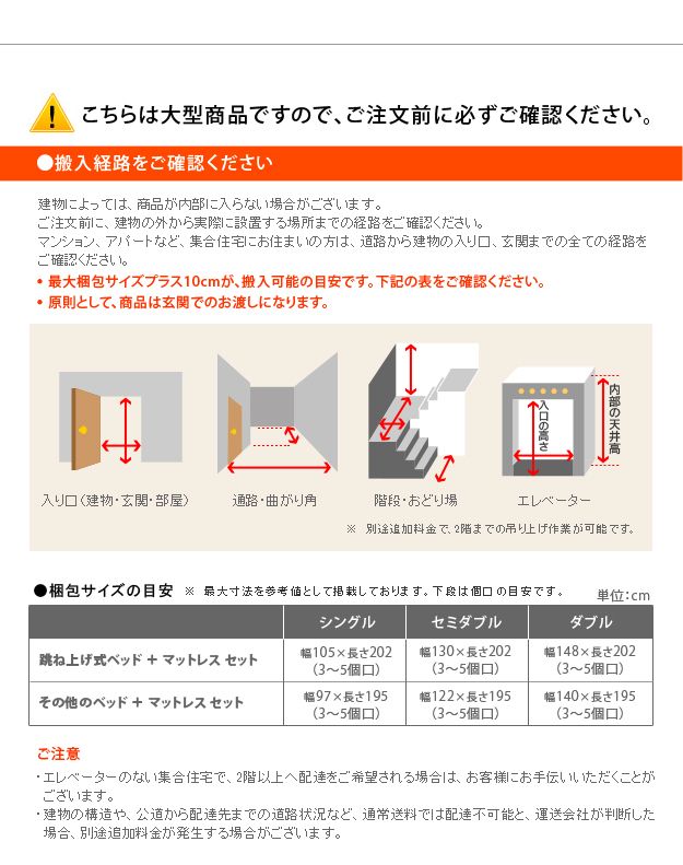 ●商品サイズと設置場所、搬入経路のご確認をお願いいたします。