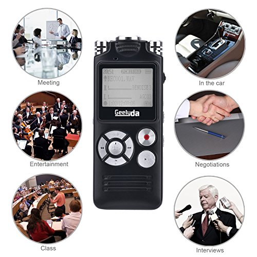 Digital Voice Recorder,Geelyda Digital Audio Sound Recorder Dictaphone,560 Hours Rechargeable 8GB Voice Activated Recorder with Mini USB & MP3 Player Dual Microphone Recording,AGC Noise Reduction.