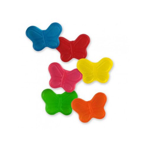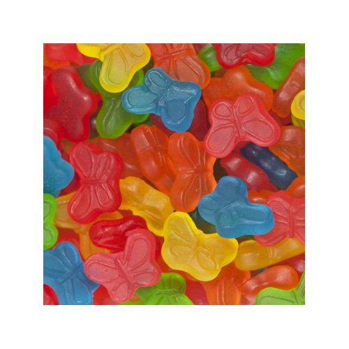 - Feature : Made in USA / Sugar Free / Having these butterflies in your stomach won't make your nervous -- it will make you hungry for more! / These bite-sized colorful gummy butterflies have morphed into six delicious flavors of strawberry, grape, orange, blue raspberry, watermelon and green apple to make the perfect spring treat.