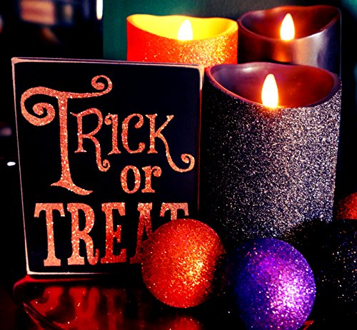 Liown Halloween Flameless Candle: Unscented Moving Flame Candle with Timer (5" Black Glitter)