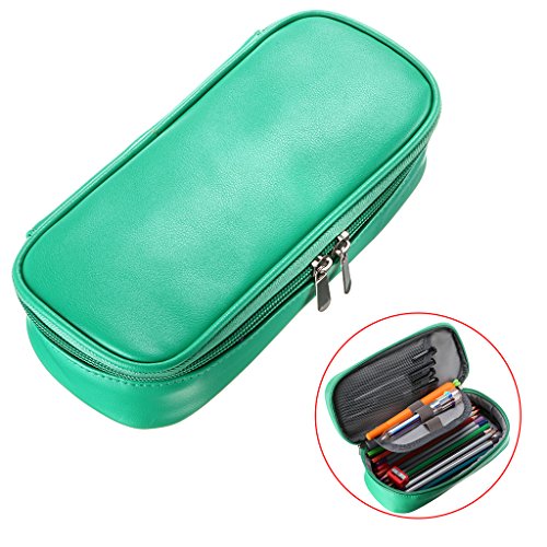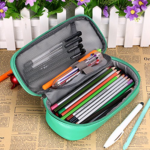 BTSKY High Capacity PU Leather Pencil Case - Multifunctional Pencil Bag Stationery Pen Organizer for Pencils, Pens, Highlighters, Gel Pen, Markers (Green)