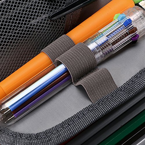 - Secure and Protect Your Precious Collection- The elastic strap holds pencils or pens securely and prevent them from falling out or being stepped on. The zipper in the back pouch ensures that nothing slips out during transit. The right tool to safeguard your expensive collection.