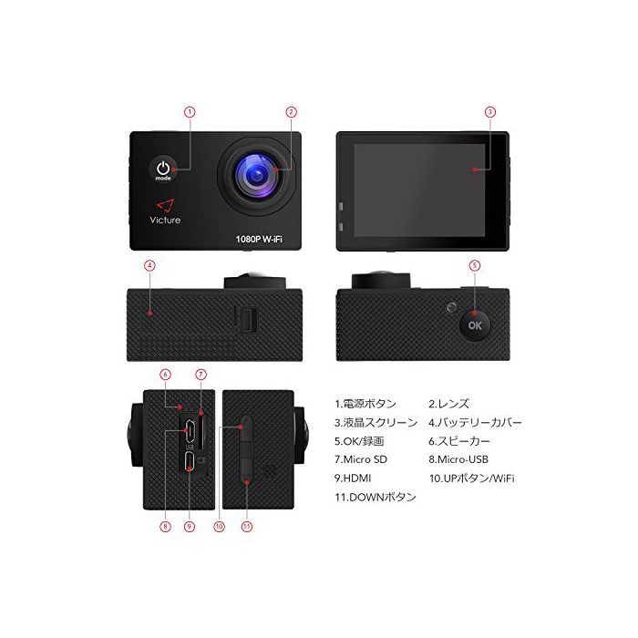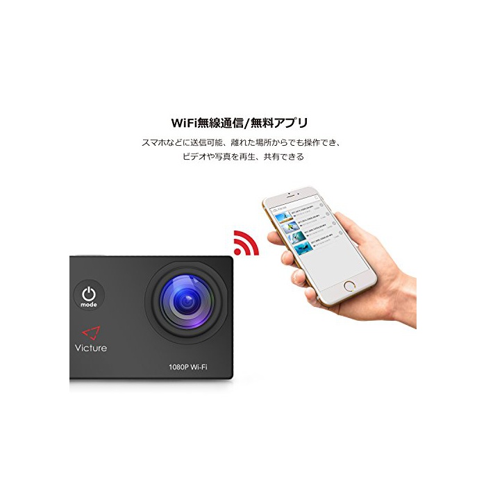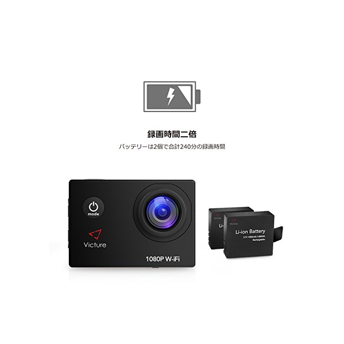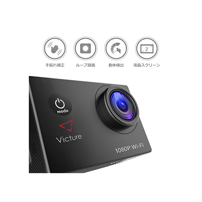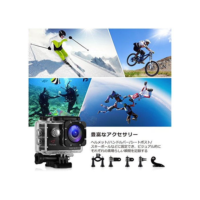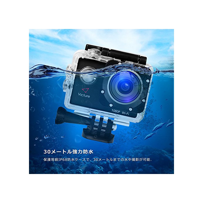 원본상품명: Victure アクションカメラ WIFI 1200万素1080P フルHD 2個電池 2インチ面 170度角 30M防水 複部品