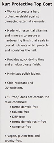 Our hardwearing top coat is designed with essential vitamins and minerals that actively protect the nail while leaving a chip-resistant, ultra glossy finish. Provides a quick, dry, ultra glossy finish while protecting from external elements and sealing in essential nutrients. Minimizes polish fading. Chip-resistant and up-resistant. Works to create a hard protective shield against damaging external elements.Feature