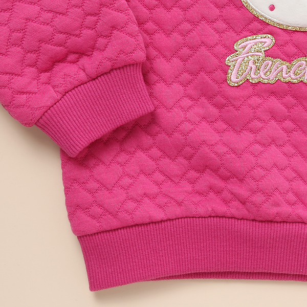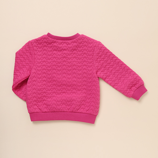 상품설명 하트 쟈가드 소재로 만들어진 핫핑크컬러의 맨투맨입니다. 입체감 있는 하트 모티브의 쟈가드 다이마루 소재로 만들어 포근하며 편안한 착용감을 줍니다. 네크라인과 소매에 립지를 넣어 활동성을 더해주었습니다. 캐주얼한 데님팬츠나 제깅스와 코디하기도 좋고 하트 쟈가드 치랭스와 세트로 코디하기도 좋습니다.