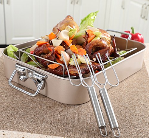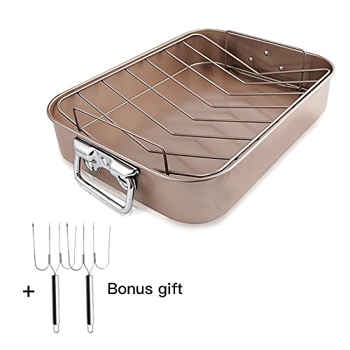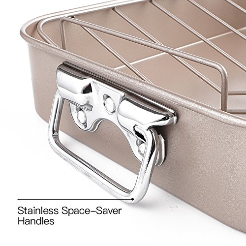❤[NONSTICK COATING] Completely nonstick roasting pan and rack make it convenient for food release and cleanup.