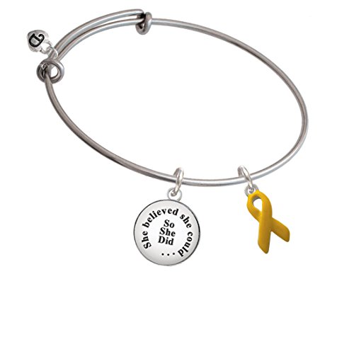 -. Feature : Awareness Ribbon Glass Dome She Believed She Could So She Did Expandable Bangle Bracelet. / Charm size is approx. 0.75 x 0.35 x 0.16 inches (HxWxD) including loop. Colors available: Red, Orange, Yellow, Green, Teal, Blue, Purple, Pink, White, and Silver Tone. / Glass dome charm is approx: 0.9 x 0.7 x 0.2 inches (HxWxD) including loop. High quality printed paper sealed under a glass dome in a metal frame. / 1.7 mm Expandable Bangle Bracelet is approx. 2.5 inches in diameter and can open up to 3.25 inches. / Also available in popular themes such as Balance, Family, Faith, Scriptures and many more! These bracelets look great layered.