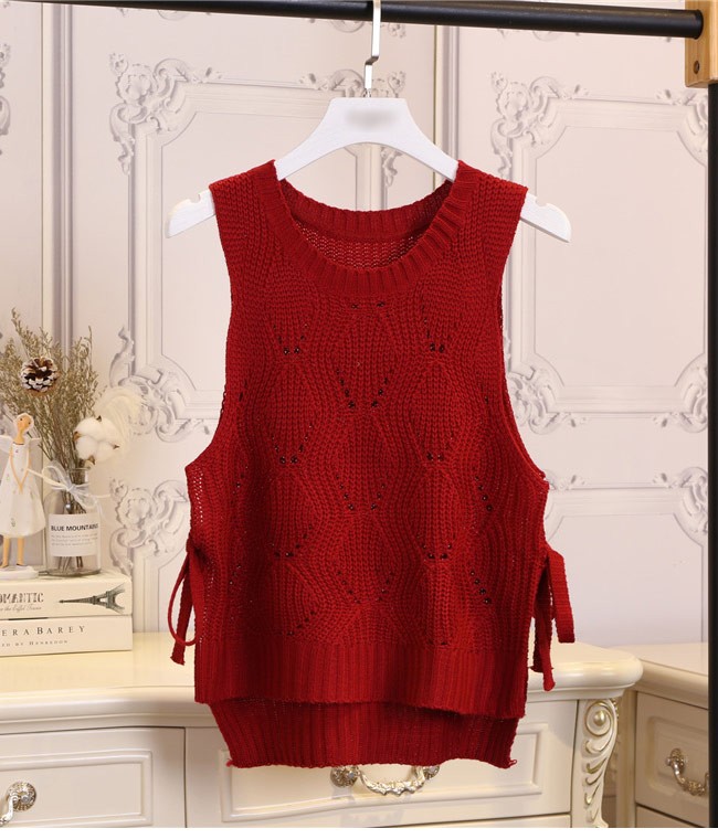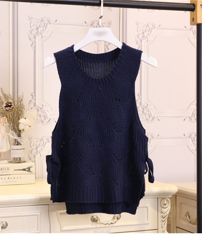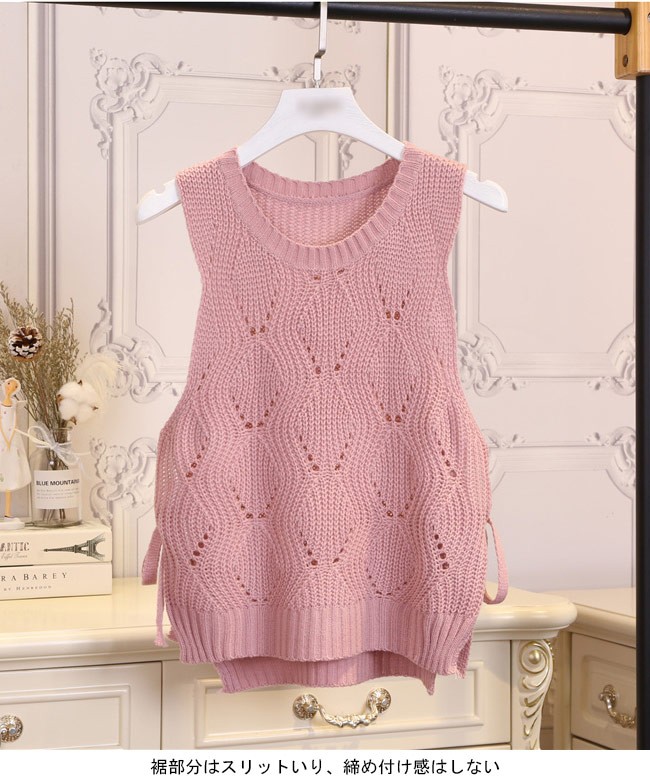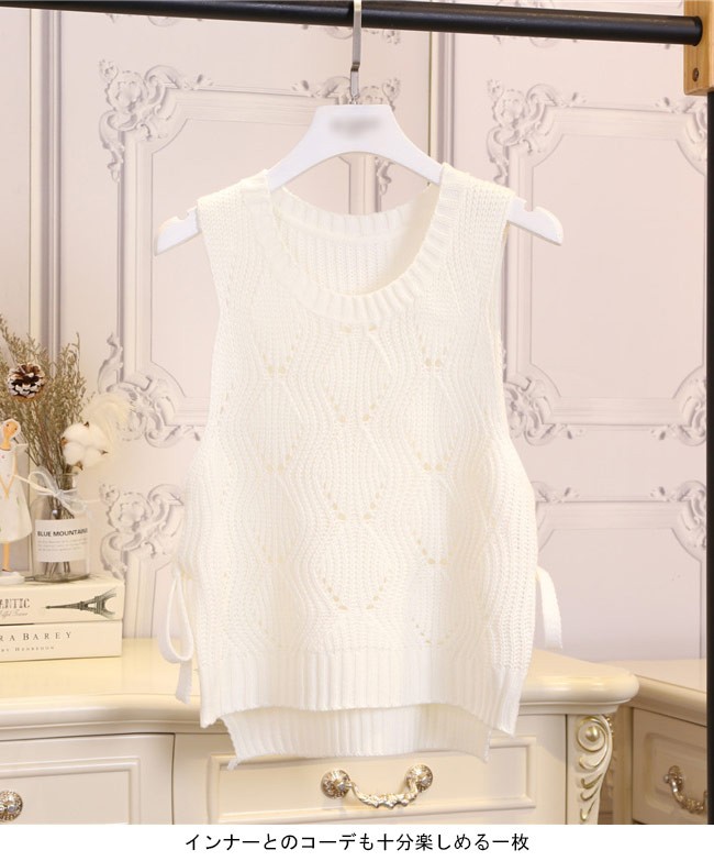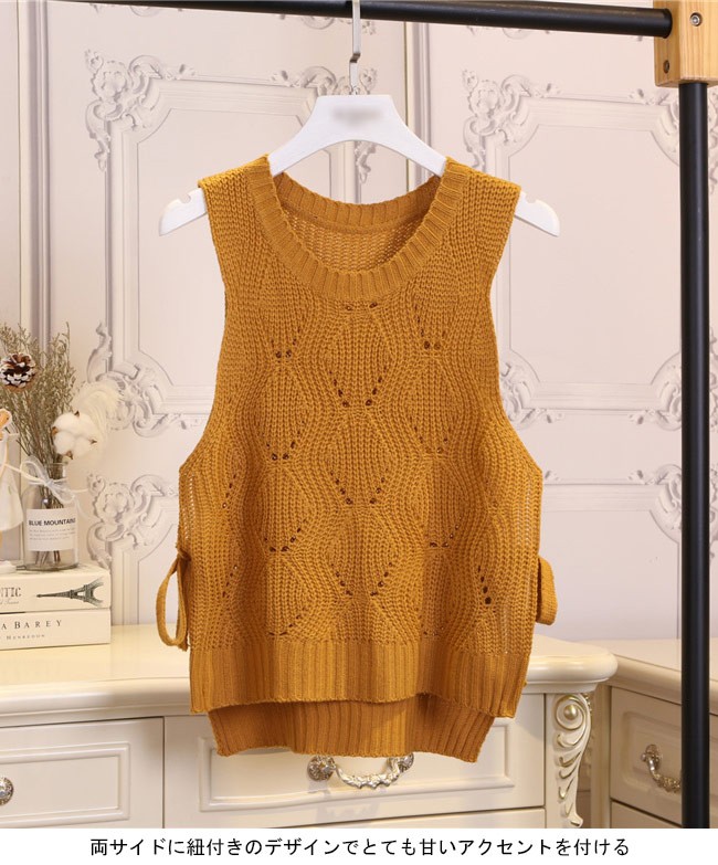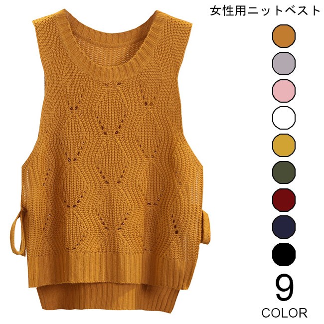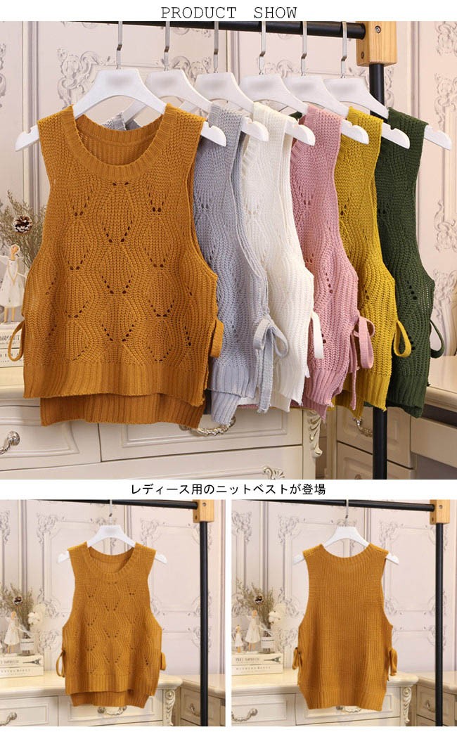 ニットベスト レディース 丸襟 ベスト プルオーバー ジレ 女性用 ニット トップス 春秋物 ノースリーブ 可愛いい 甘い カラバリ