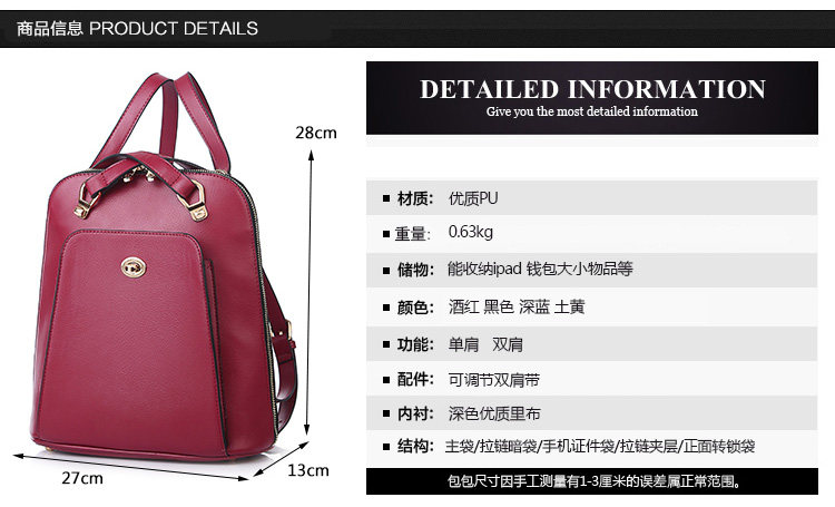 Structure: The main bag zipper pocket cell phone pocket document