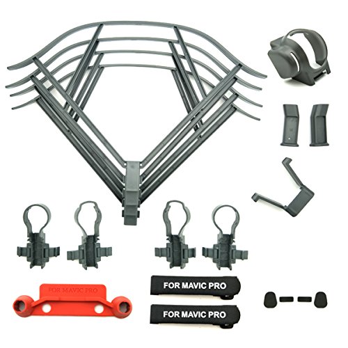 Package included: 4 X Landing Gear Extender 1 X Lens Hood Gimbal Guard 1 X Quick Release Propeller Prop Guard 1 X Remote Controller Stick Thumb Protective Clip 2 X Propeller Stabilizer Fixing Strap