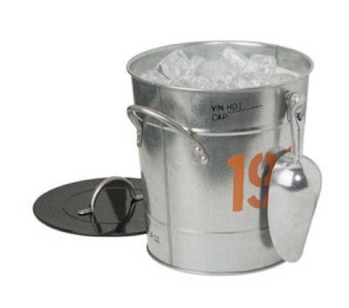 -. Feature : 3.75 Quart galvanized bucket with plastic liner / Embossed lid and exclusive H-D 1903 graphic / Cast aluminum ice scoop hangs from hook on side / Dimensions: 7.75" diameter X 9" (H)