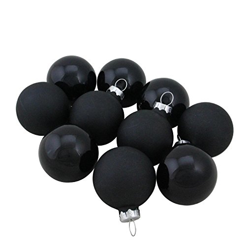 NORTHLIGHT WY00731 Black Glass Ball Christmas Ornament Set, 1.75"