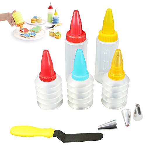 - 8 DIFERENT CAKE DECORATING TIPS: Our dessert cookie cupcake decorating squeeze bottle with 8 different piping mouth, and the mouth can be exchange for different shape, perfect for DIY cake baking decorating.