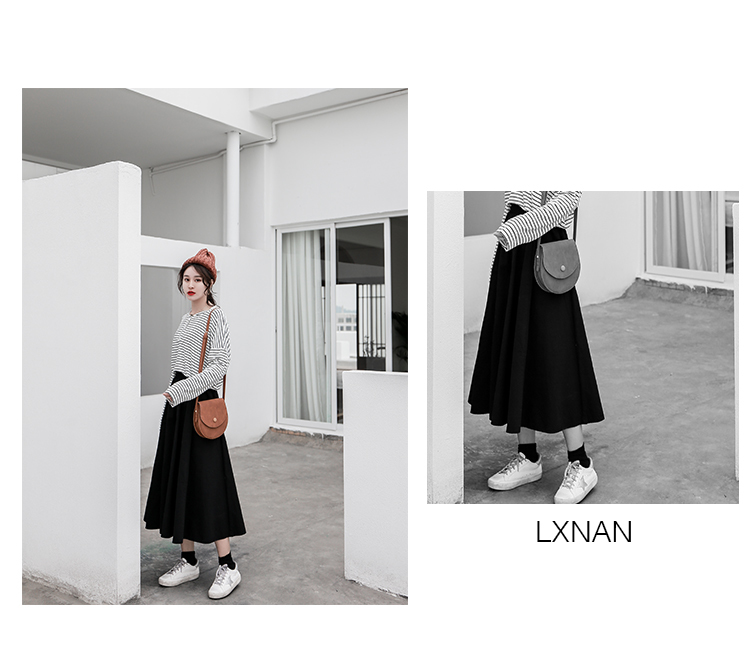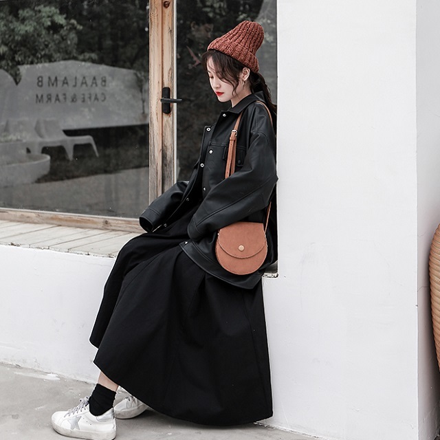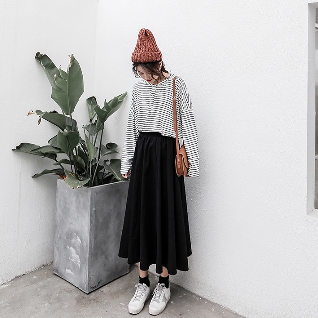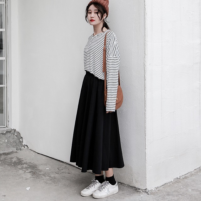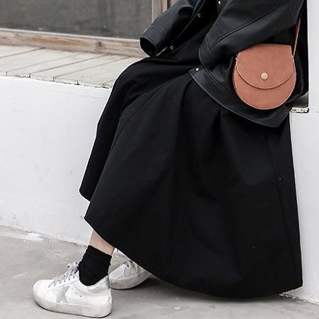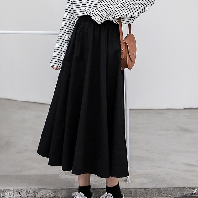 ブラックのワンカラータイプで着まわし力バツグンのミモレ丈スカートです◎