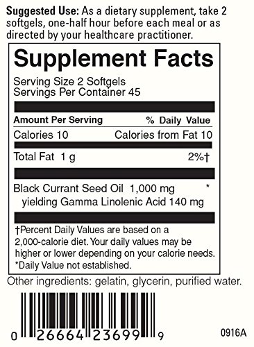 A dietary supplement to support skin and nerve health and premenstrual functional needs.* A rich source of the essential fattyacid GLA from organic Black Currant Seed Oil.