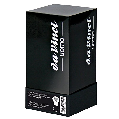 Studio : Gregory Daniels Fine Arts - DaVinci Beauty Publisher : Gregory Daniels Fine Arts - DaVinci Beauty Binding : Health and Beauty Product Description Highest quality, hand bound silvertip badger hair shaving brushes, manufactured in Germany by the Da Vinci factory. Family owned and operated since 1880, Da Vinci is the only green brush factory in the world. Series 293 is 22mm and is part of the Uomo shaving line. Comes in a luxury gift box and has a black Perspex, globular handle with a chrome setting. Brush stands solidly. The silvertips come from selected awn hairs which are extremely elastic and have fine tips. 0