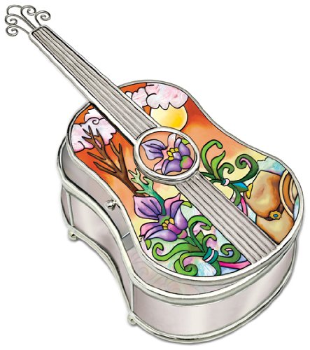 Amia Country Guitar Musical Jewelry Box, Hand-Painted Glass, 9-1/4-Inch Long