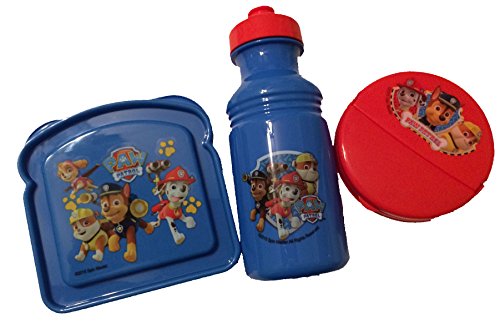 -. Feature : This Paw Patrol lunch set is BPA Free / 3 Piece set contains: Sandwich Container, Pull Top Water Bottle, Flip Top Snack / Container Dishwasher Safe