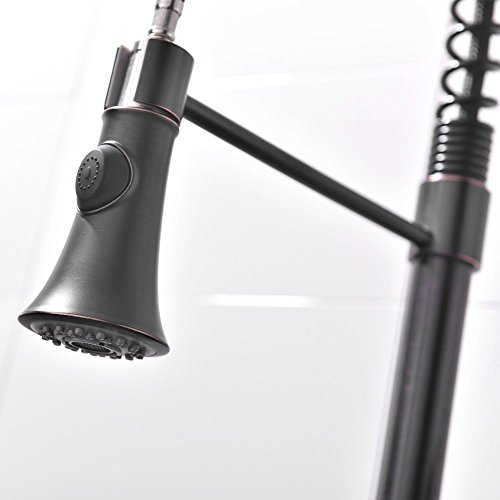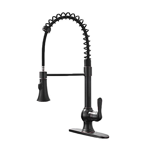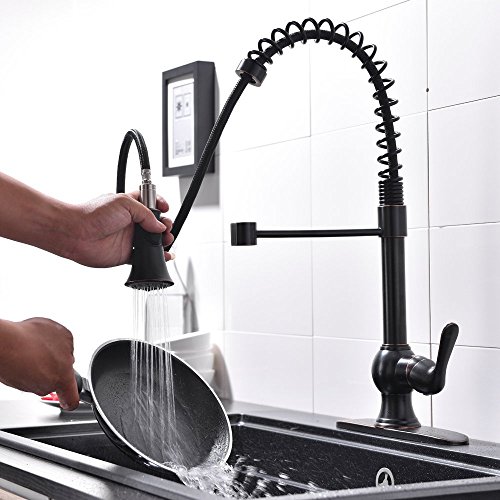 Ufaucet Best Modern Stainless Steel Single Handle Spiral Spring Pull Out Sprayer Pre Rinse Single Lever Kitchen Sink Faucet,Oil Rubbed Bronze Kitchen Faucets