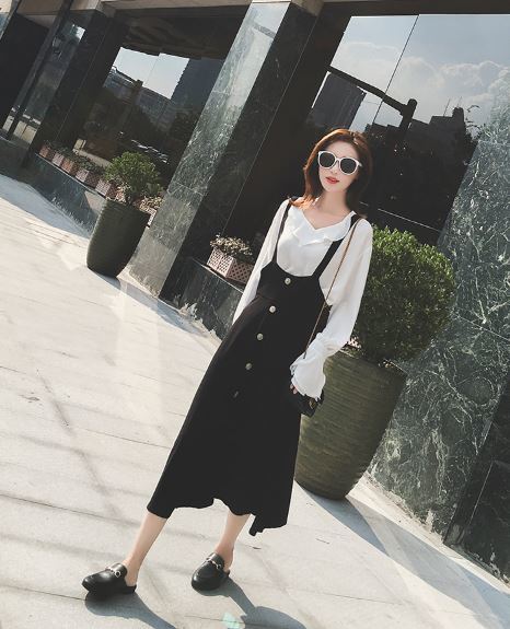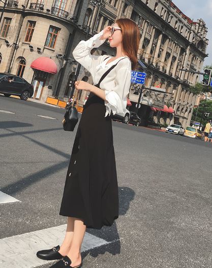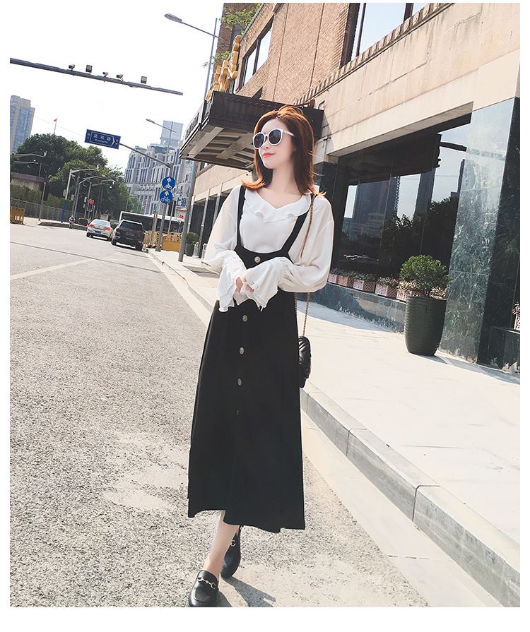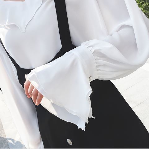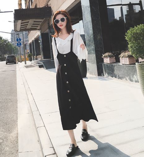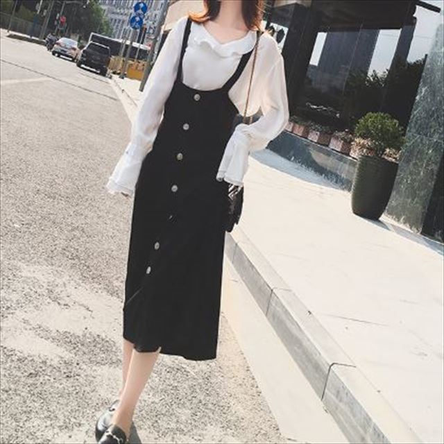 これだけでコーデが完成☆フリルシャツ&ストラップ付スカートセットのご紹介です。