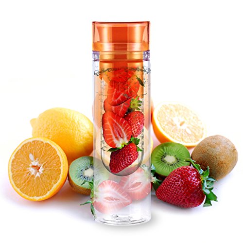 This fruit infused water bottle is great for taking to the gym, office, school, travel, the outdoors which makes drinking more water on the go easier. It's made of Tritan plastic, a material that's touted as safer for food contact. It's easy to clean, and holds a decent amount of water.