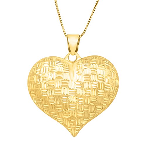 -. Title : Just Gold Puffed Heart Pendant Necklace in 14K Gold