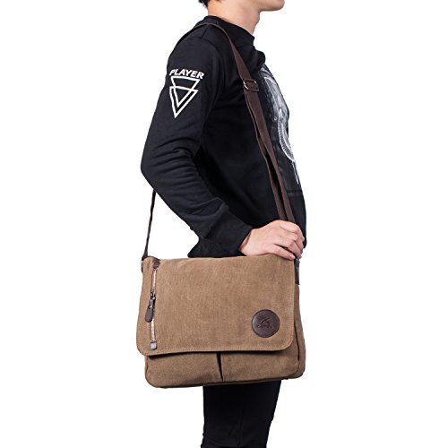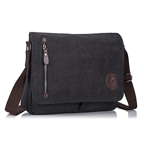 -. Title : Baigio ショルダーバック メンズ 斜めかけ 帆布 メッセンジャーバッグ 大容量 軽量 斜めかけバッグ 高校生 キャンバス 人気 通勤 通学 出張 おしゃれ 帆布バッグ ズックバック 防水 ブラック ブラウン
