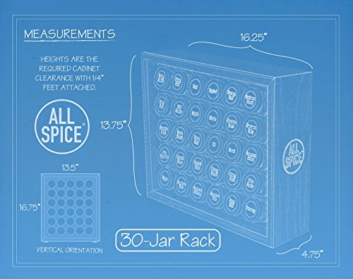 Finally, you can organize your entire spice collection in one place! At the heart of the AllSpice rack are 30 full-size, 4 oz. (1/2c), glass jars - the preferred size of specialty spice shops. Reclaim valuable drawer and cabinet space by eliminating piles of spice bags and containers.