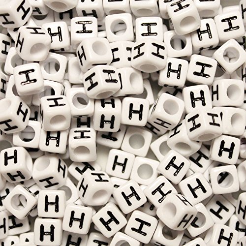 White Plastic Cube Alphabet Beads, Small, 6mm, Letter H, 100 pcs