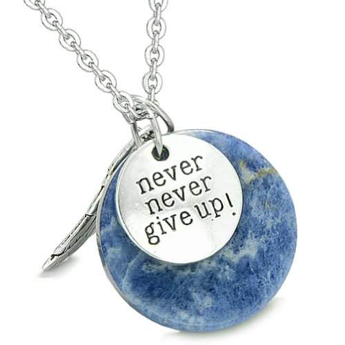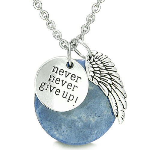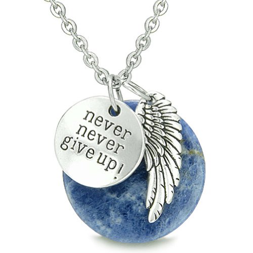 -. Binding : Jewelry -. Brand : BestAmulets -. Department : womens -. Feature : Best Amulets® Collection. Angel Wing and Inspirational "Never Never Give Up" Amulet Magic Circle Medallion Lucky Charm Sodalite Pendant on 18" NecklaceAngel Wing and Inspirational "Never Never Give Up" Amulet Sodalite Pendant 18 Inch Necklace / Never Never Give Up Charm and Angel Wing Charm are made from Stainless Steel. Angel Wing is Not attached to Gemstone and hangs separately on individual jump ring. / Gemstone Size: 30mm. / Ready to wear with Cute 18" Link Style Stainless Steel Chain. Natural Gemstones are used and may or will have natural specks and inclusions. / Comes with Branded Packaging. -. Label : BestAmulets -. Manufacturer : BestAmulets -. Model : WING-INSPR5 -. MPN : WING-INSPR5 -. PartNumber : WING-INSPR5 -. ProductGroup : Jewelry -. ProductTypeName : FASHIONNECKLACEBRACELETANKLET -. Publisher : BestAmulets -. Studio : BestAmulets -. Title : Angel Wing and Inspirational "Never Never Give Up" Amulet Sodalite Pendant 18 Inch Necklace