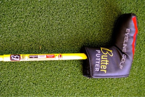 -. Binding : Sports -. Brand : EyeLine Golf -. EAN : 0858858001850 -. Feature : Super flexible shaft eliminates the quickness in your stroke / Quickly builds your putting rhythm and confidence / The flex sleeve on the shaft slides to change the difficulty and Challenge / Michael breed lifeline training grip, milled putter face and high end quality / Infuses fun into your practice time while producing rapid improvement -. Label : EyeLine Golf -. Manufacturer : EyeLine Golf -. Model : BUTTER-R -. MPN : BUTTER-R -. PackageQuantity : 1 -. PartNumber : BUTTER-R -. ProductGroup : Sports -. ProductTypeName : SPORTING_GOODS -. Publisher : EyeLine Golf -. ReleaseDate : 2014-05-15 -. Size : 35-Inch -. Studio : EyeLine Golf -. Title : EyeLine Golf Butter Putter with Flexible Training Shaft, Right Hand, 35-Inch -. UPC : 858858001850