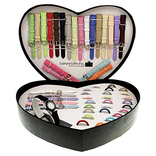 Quartz movement ladies watch set - Interchangeable bands watch set with storage holder.