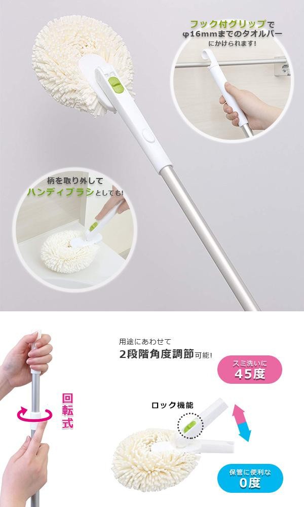 ソフトなポリエチレン製で水ハネしにくく、キズをつけにくい。 製造国:ベトナム 素材・材質:柄・台:アルミニウム合金、ポリプロピレン、ポリアセタール、ABS樹脂頭:ポリエチレン 商品サイズ:(約)幅13×奥行8×長さ77(伸縮75~110)cm ※サプライヤー直送品 ご注文後3~4営業日後の出荷となります【商品名】BATH 浴室清掃 伸縮アルミ柄ポリバス ロング