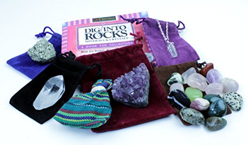 Studio : Dancing Bear Publisher : Dancing Bear Binding : Toy Product Description Fun stocking stuffer collection of 7 different gifts include Quartz point Crystal necklace, Amethyst cluster, tumbled stones, Quartz point crystal, Pyrite chunk (Fool's gold), Guatemalan Worry dolls (according to legend, Guatemalan children tell one worry to each doll when they go to bed at night and place the dolls under their pillow. In the morning the dolls have taken their worries away). Due to nature each rock and mineral will be unique and different. This set also comes with a "Dig into Rock"book which offers a wonderful introduction to the earth's geological treasures. Rocky the Rock hound leads the reader to discover lots of interesting facts in this small but informative book. Great for boys or girls, men or women. Dancing Bear's owner has over 35 years of experience importing and distributing and creating educational rock and mineral sets. Dancing Bear offers a full money back guarantee,-If you are unhappy for any reason contact me and you will get your money back including shipping. Assembled in the USA by a dedicated team of proudly employed adults with intellectual and developmental disabilities at the Pearl Buck Center in Eugene, Oregon. We give 10% of our profits to charities. 0